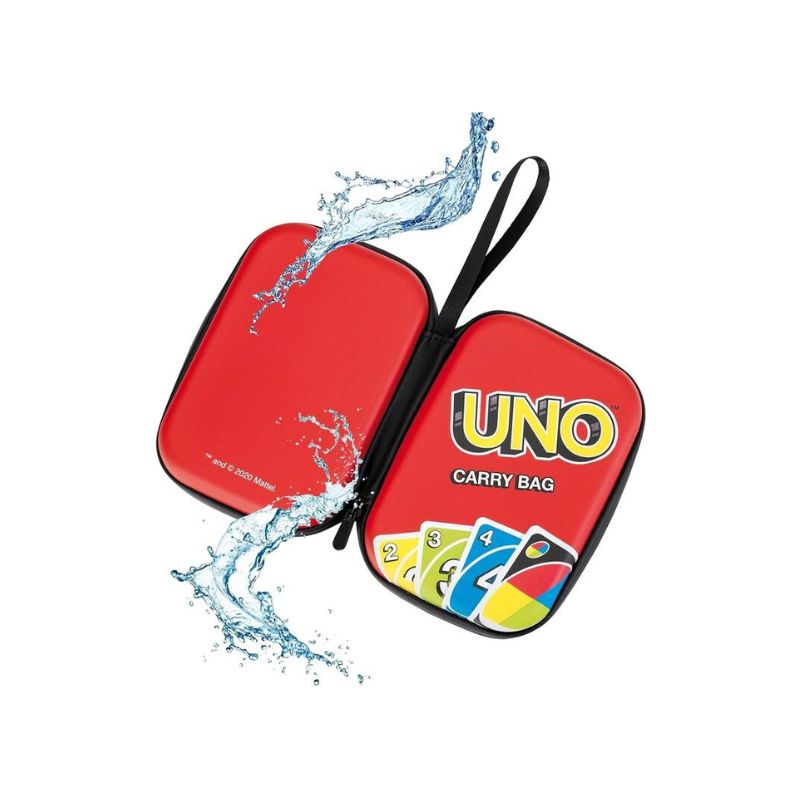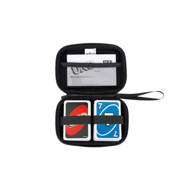 Inclui: 1 estojo impermeável para cartas Uno com pega de mão, fecho de correr, interior organizado, design de grande resistência.