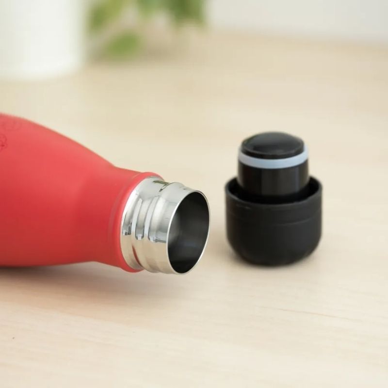 Garrafa metálica fabricada em aço inoxidável com parede dupla. Mantém a bebida quente até 12 horas e fria até 24 horas. Possui tampa com fecho hermético. A sua composição é livre de BPA, o que garante um consumo seguro para a saúde. Não é adequada para micro-ondas.
