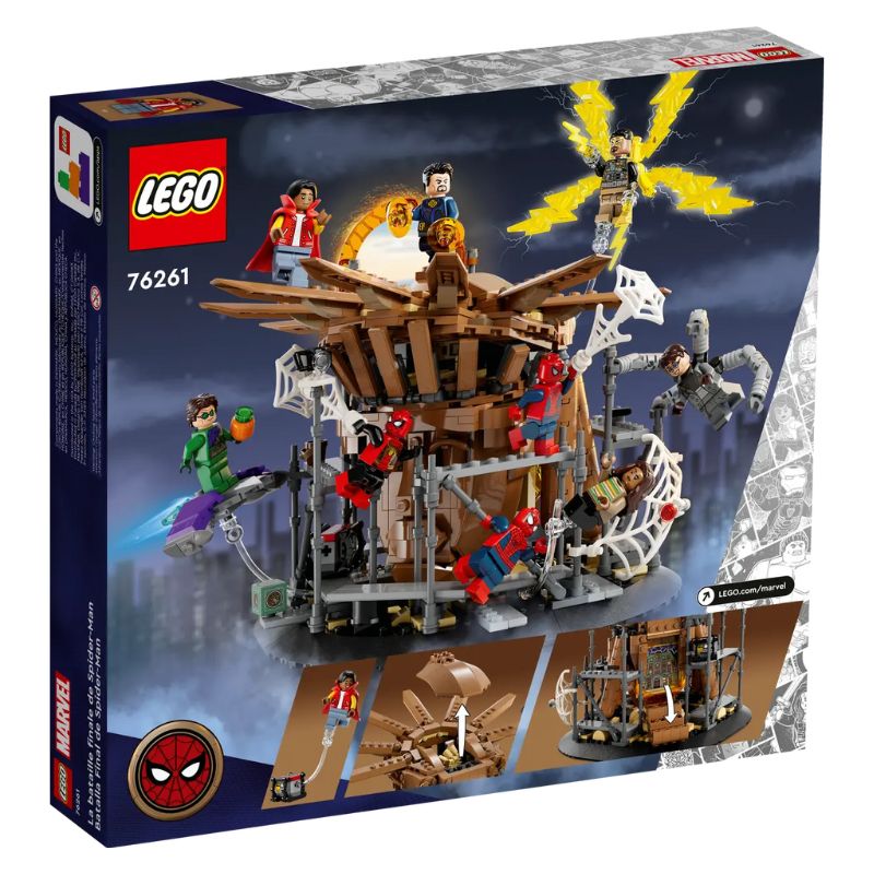 O LEGO Marvel O Combate Final do Spider-Man (76261) recria o espetacular combate do filme "Homem-Aranha: Sem Volta a Casa" da Marvel Studios. Repleto de personagens icónicas e ação com teias lançadas, esta deslumbrante celebração do Spider-Man vai cativar os fãs com idade 10+.