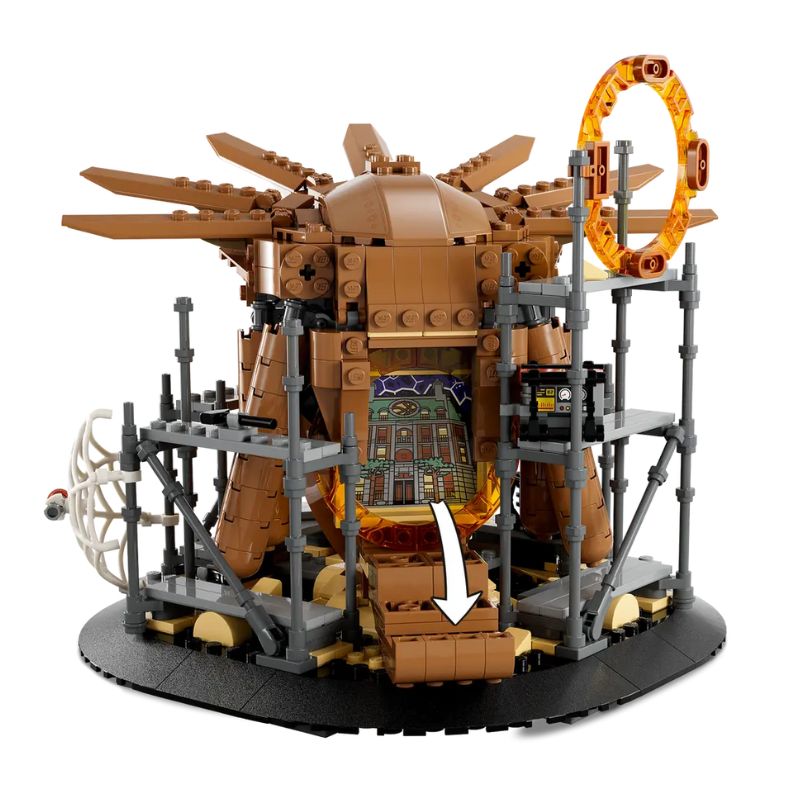 Este set a 360 graus inclui uma fantástica variedade de minifiguras LEGO Marvel, incluindo 3 versões de Spider-Man: o Amigável Vizinho Spider-Man (Tobey Maguire), O Fantástico Spider-Man (Andrew Garfield) e Spider-Man (Tom Holland). As restantes minifiguras são do Electro, Doctor Strange, Green Goblin, Ned, MJ e Doc Ock. Estão incluídas inúmeras funcionalidades para maximizar as possibilidades de brincadeira e exposição, incluindo 3 suportes de minifiguras para ação no ar, um telhado removível que apresenta a mão do Sandman, um acesso invertido a um portal e uma peça de teia para envolver as minifiguras.