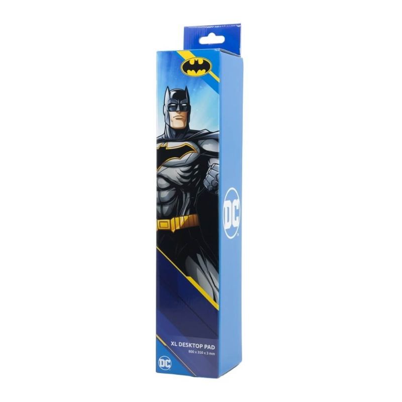 Esta peça apresenta um elegante logótipo do Batman num impressionante tom dourado sobre um fundo preto que realça a sua presença. Com um tamanho generoso de 35 x 80 cm, é o complemento perfeito para qualquer secretária.